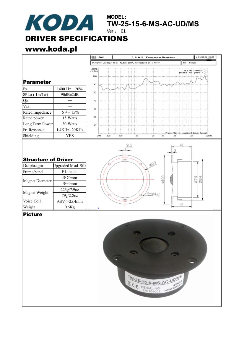GŁOŚNIK WYSOKOTONOWY KODA D7 TW-25-15-6-MS-AC-UD/MS GLIWICE